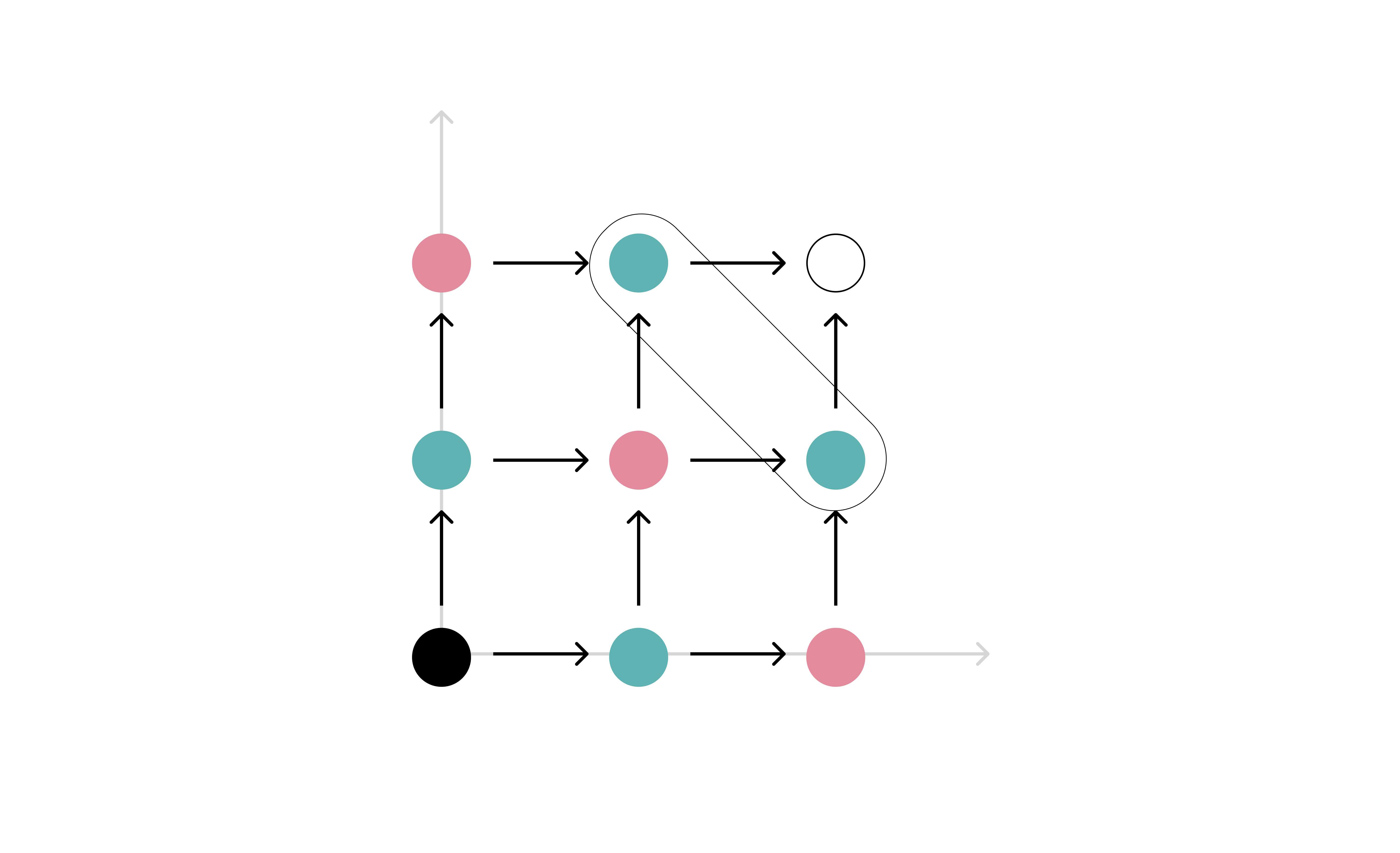Note that if we count the distance from each point to the "sink" we start seeing layers at the same distance, and importantly two properties hold: